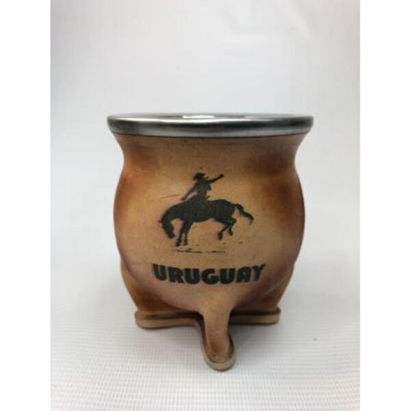 Mate de cerámica forrado con dibujo de gaucho a caballo
