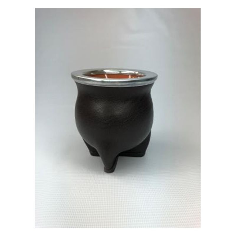 Mate de cerámica forrado en símil cuero con boquilla de aluminio color marrón oscuro