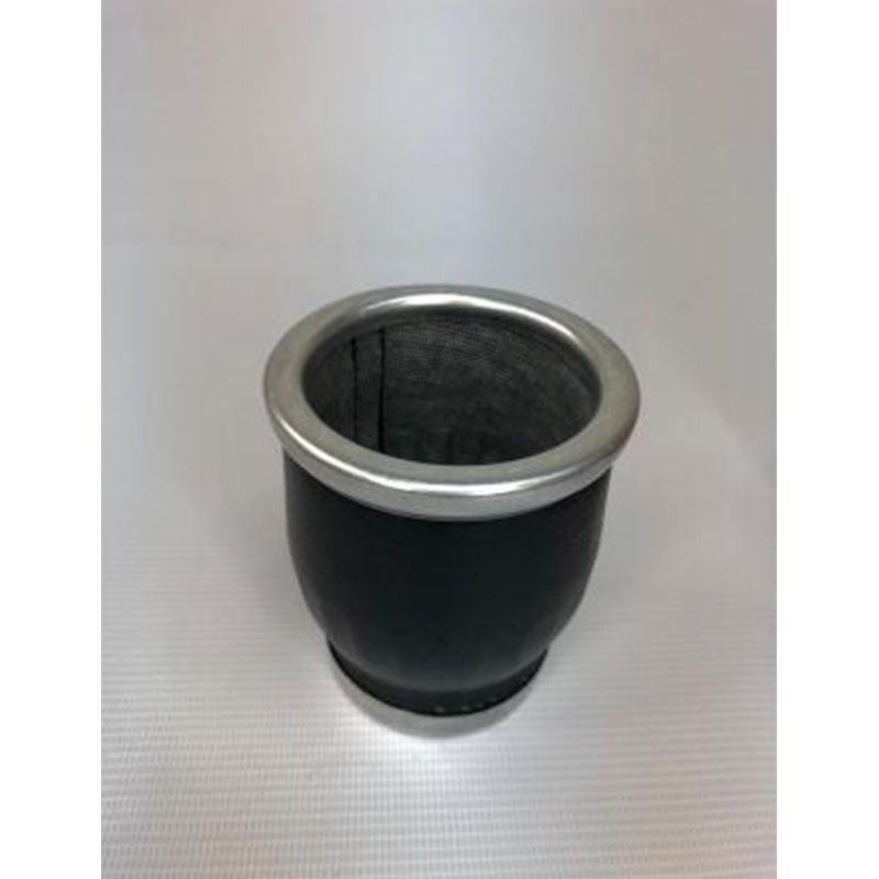 Mate vaso de vidrio forrado símil cuero liso con boquilla y base marrón